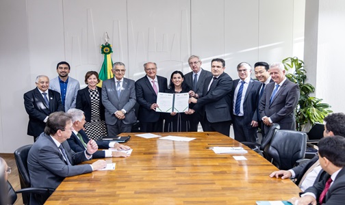 O Governo Federal formalizou nesta quarta-feira, 7/5, em cerimônia no Ministério do Desenvolvimento, Indústria, Comércio e Serviços (MDIC), em Brasília, a assinatura de termos de compromisso de quatro projetos estratégicos aprovados pela Finep. O evento contou com a presença do presidente da Finep, Celso Pansera; do secretário-executivo do MCTI, Luis Fernandes, que representou a ministra; e do ministro do Desenvolvimento, Indústria, Comércio e Serviços (MDIC) e vice-presidente da República, Geraldo Alckmin, entre outras autoridades.